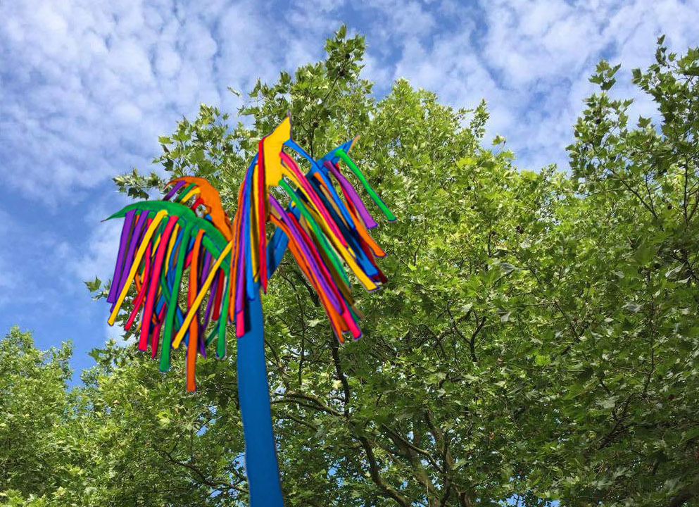 In der eigens für den Platz des 20. Juli entwickelten Installation „Südsee an der Hase“ setzt sich die Künstlerin Carmen Einfinger mit der Bedeutung der Palme als eines der ältesten bekannten Pflanzensymbole der Menschheit, als auch mit ihrer religiösen Symbolik von der Antike, über das Juden- und Christentum, auseinander. Gleichzeitig ist die Palme heutzutage das Sehnsuchtsbild für den Süden, Wärme, Strand und Meer – sieht man eine Palme, ist der Gedanke an den Urlaub und Südsee nicht weit. Wie viele Osnabrücker haben zu Hause Zimmerpalmen… oder zumindestens ein Foto der Südsee, die sie in die weite Ferne tragen? Warum nicht das Unmögliche möglich machen und eine Palmeninsel an der Hasemauer errichten? Der Platz vor der Kirche, der in ländlichen Gegenden auch heute noch ein Treffpunkt der Menschen ist, wird somit zu einer temporären Insel und zu einem Ort der Begegnung, bricht gewohnte Denkstrukturen auf und zeigt mit dieser ungewöhnlichen Installation, dass Träumen nicht nur Illusion, sondern direkt hinter der vermeintlichen Mauer Raum für unerwartete Erfahrungen ist.